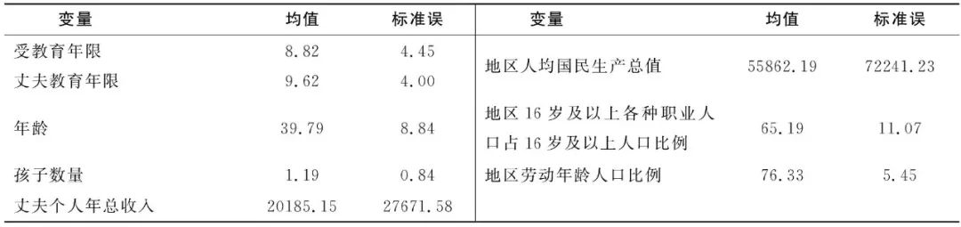 因变量劳动参与指调查时女性参与社会劳动的状态(正在参与编码为1,否则为0),参与社会劳动状态包括正在工作和正在寻找工作两种情况。